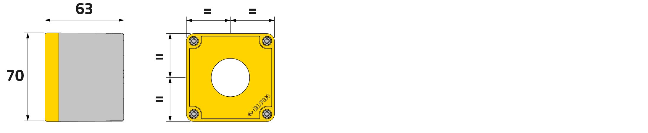 Drucktastergehäuse in PA + Glasfaser 70x70x63, 1 Bohrung d22, gelb