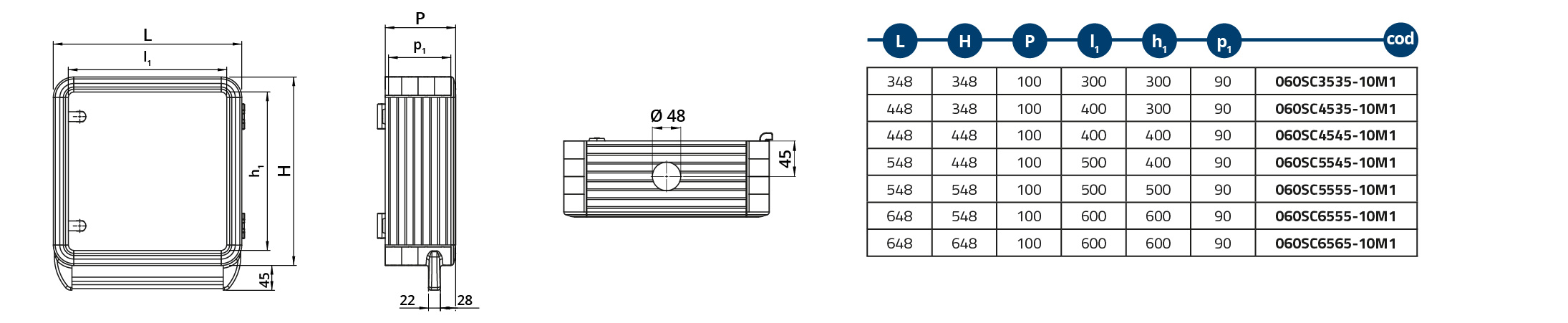 Caja de aluminio 350×350×100 con maneta inferior
