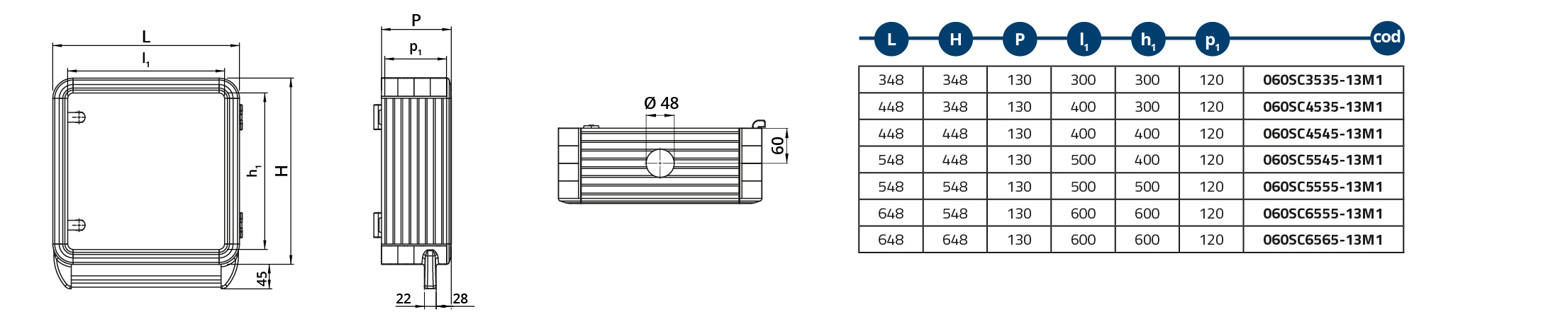 Caja de aluminio 550×550×130 con maneta inferior