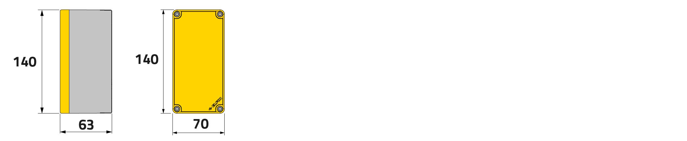 Caja pulsadora in PA + fibra de vidrio 70x140x63, sin orificios, amarillo