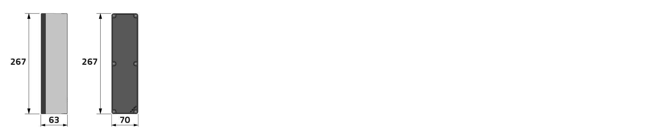 Caja pulsadora in PA + fibra de vidrio 70x267x63, sin orificios, UL