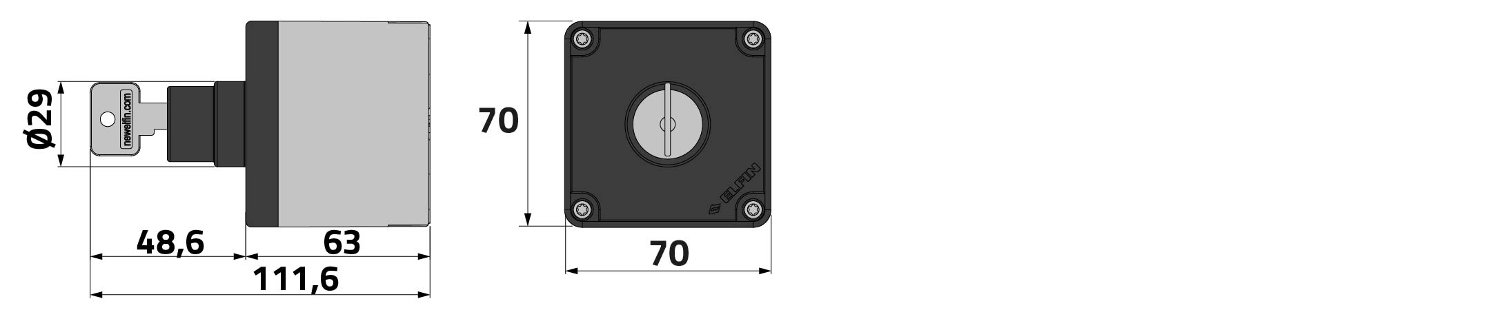 Caja pulsadora in PA + fibra de vidrio 70x70x63 con selector con llave