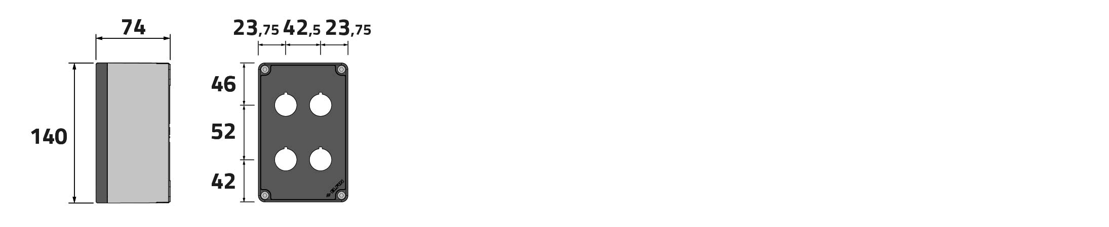 Caja pulsadora in PA + fibra de vidrio 90x140x74, 4 orificios d22