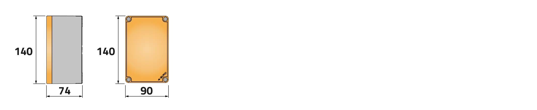 Caja pulsadora in PA + fibra de vidrio 90x140x74, sin orificios, transparente