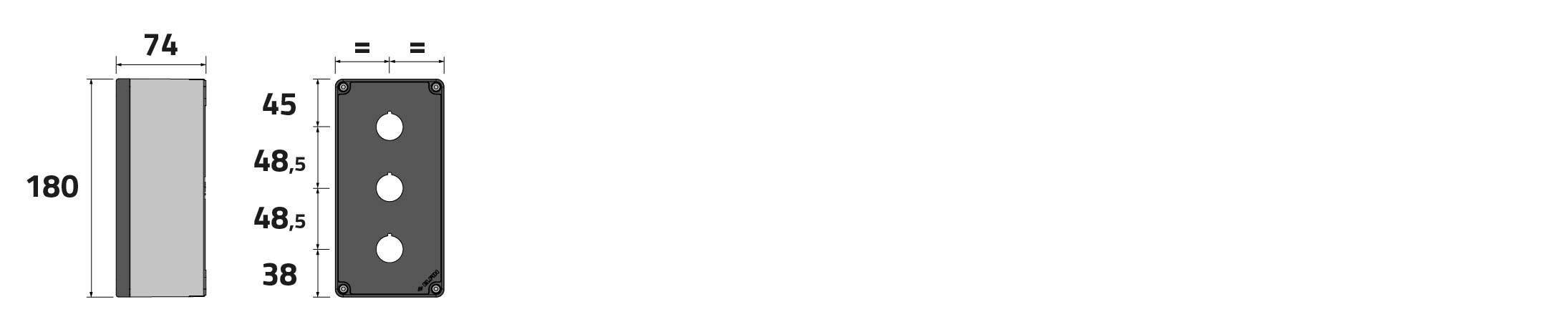 Caja pulsadora in PA + fibra de vidrio 90x180x74, 3 orificios d22