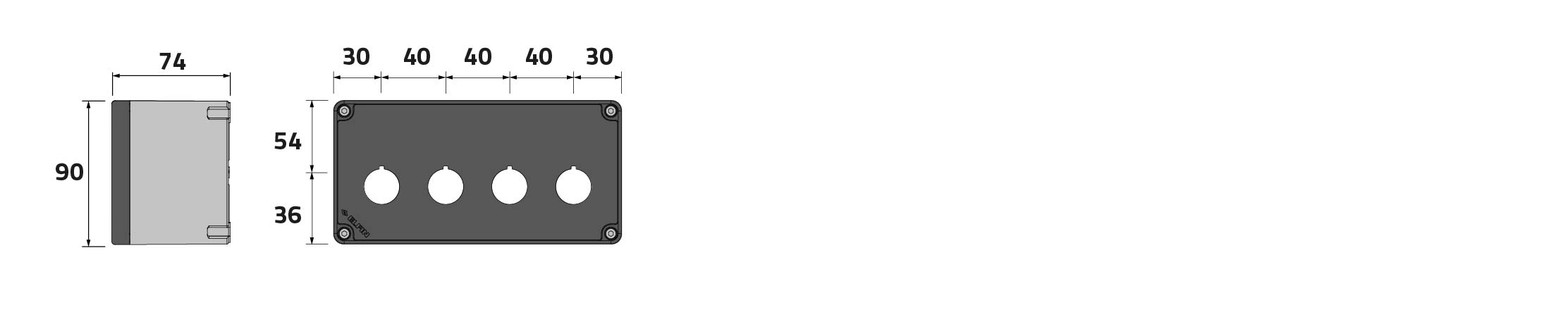 Caja pulsadora in PA + fibra de vidrio 90x180x74, 4 orificios d22