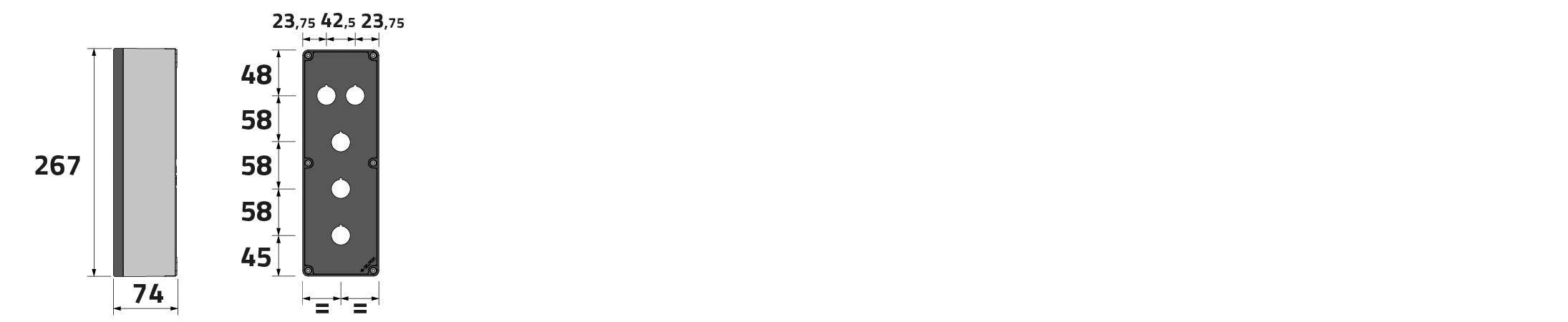 Caja pulsadora in PA + fibra de vidrio 90x267x74, 5 orificios d22