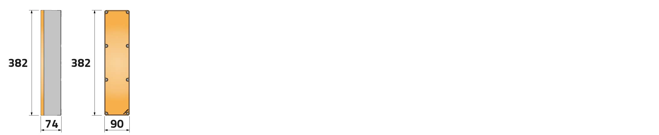 Caja pulsadora in PA + fibra de vidrio 90x382x74, sin orificios, transparente, UL