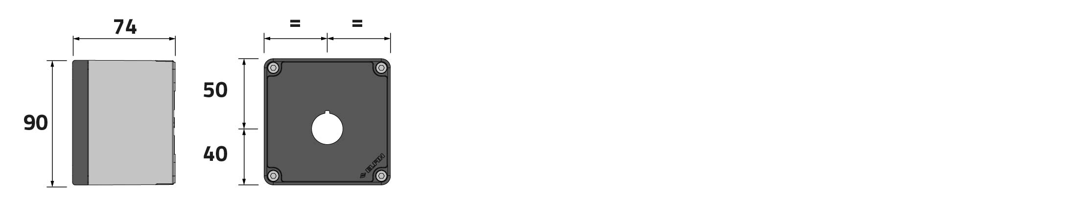Caja pulsadora in PA + fibra de vidrio 90x90x74, 1 orificio d22