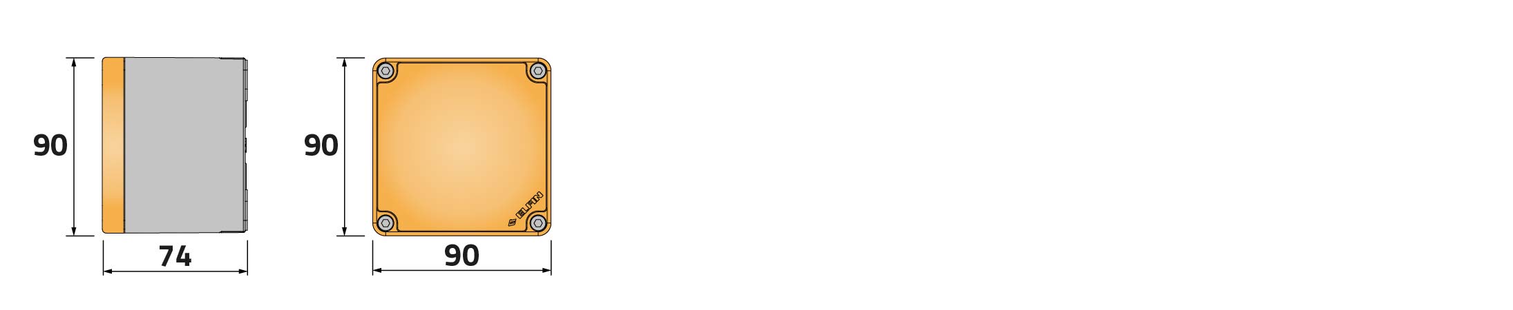 Caja pulsadora in PA + fibra de vidrio 90x90x74, sin orificios, transparente, UL