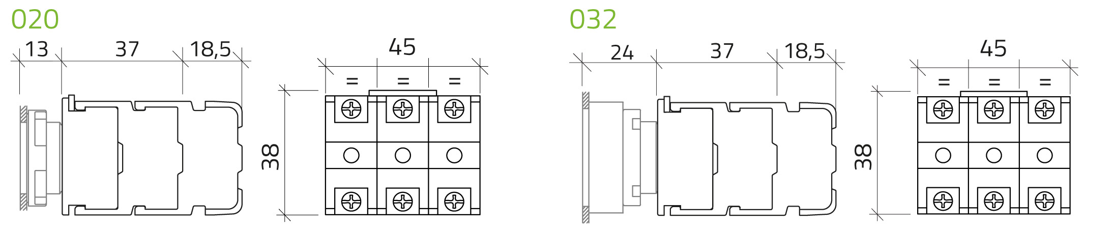 Elemento de contacto 2 N.O. con monitorización automática