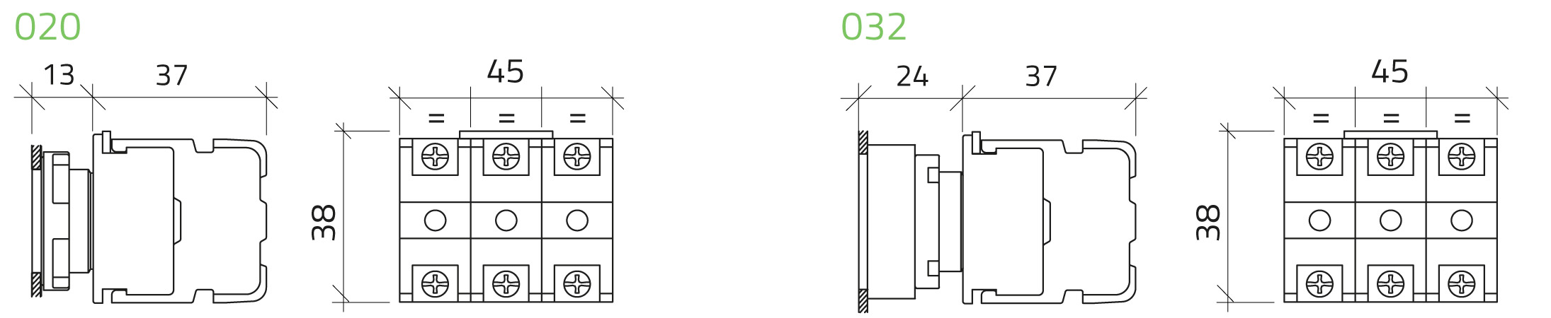 min 1x0.5mm2 (20AWG) - max 2x2.5mm2 (14AWG)