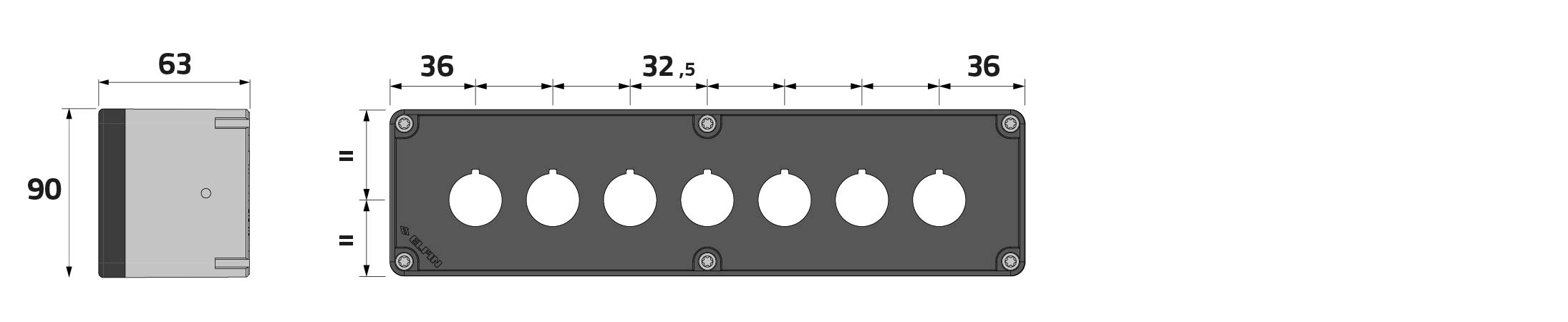 Boîte à boutons in PA + fibre verre 70x267x63, 7 trous d22