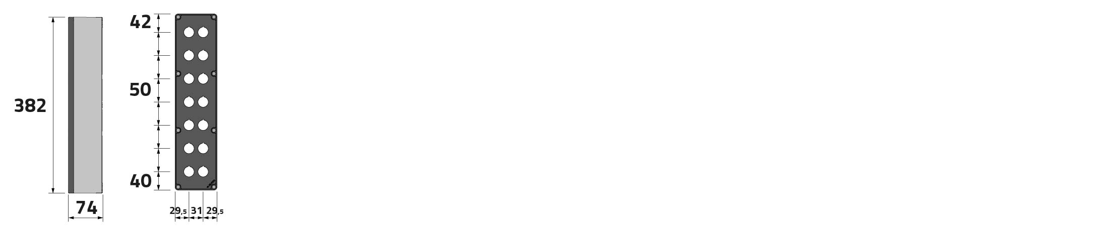Boîte à boutons in PA + fibre verre 90x382x74, 14 trous d22